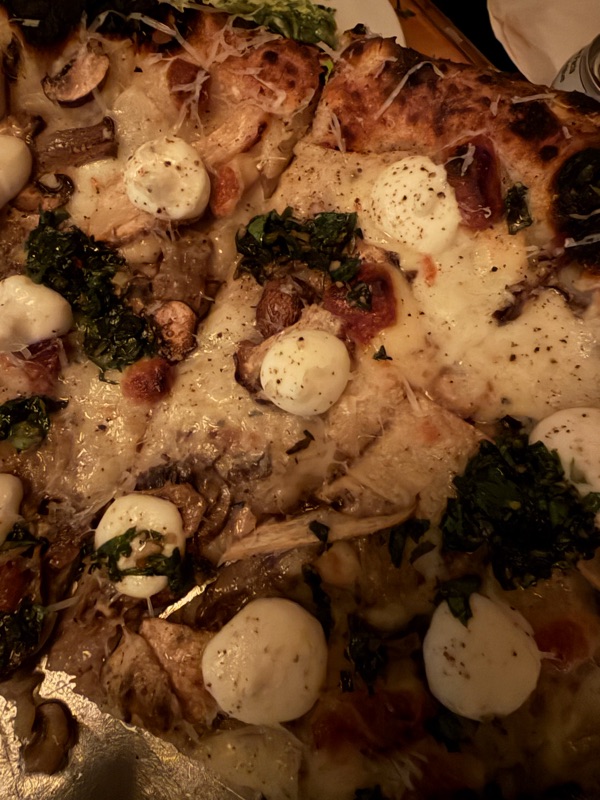 * However, the pizzas that truly stole the show were the Mama's Mushroom and the Vinny Massimo. The Mama's Mushroom with its delightful mix of mushrooms, garlic, thyme, and dollops of ricotta was absolutely divine—a perfect 10/10.