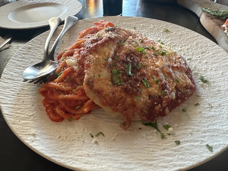 The chicken parmesan was a simple and well-made dish, and the side of pasta was great. The chicken, however, was a bit lacking in flavour and could have benefited from more seasoning. I could taste the breading over the chicken. (5/10).