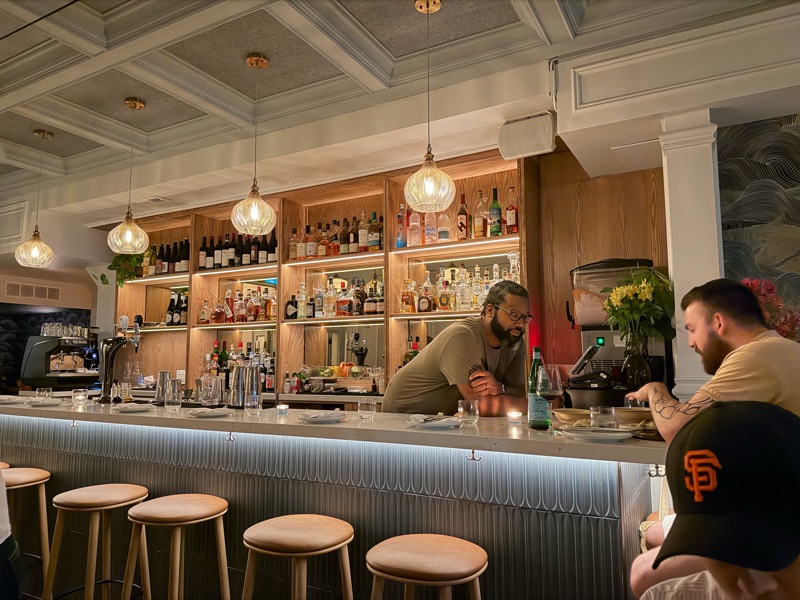 Stepping into Bar Eugénie, you immediately sense the pedigree and passion of its creators, alumni of the celebrated Alo restaurant. The room itself is a triumph: a cozy, chic space accented by stunning crown molding, a beautiful bar design, and mesmerizing antique belt-driven ceiling fans. It possesses the rare ability to feel both grand and intimate.