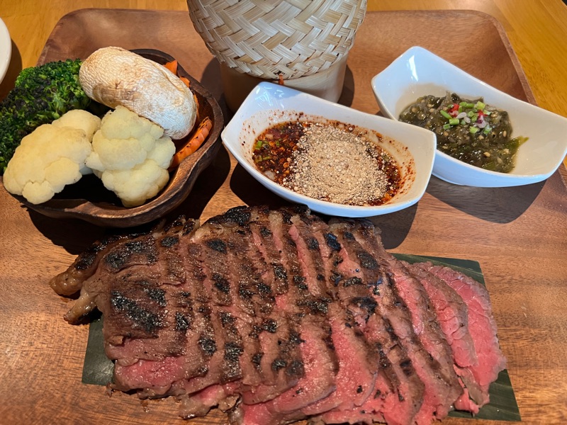 The Picanha Crying Tiger is a substantial dish, easily generous enough for two to share. The grilled beef had a subtle flavour that was beautifully enhanced by the accompanying array of Thai dipping sauces. While the dish was good, we felt it could be elevated by serving a different, more imaginative selection of grilled vegetables on the side to better complement the robust cut of steak.