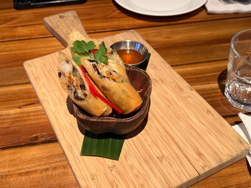 We began with two appetizers, the Spring Rolls (6/10) and the Donut Shrimp (6/10).