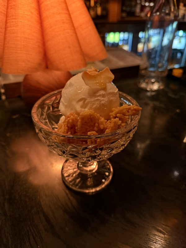 A fantastic finish. The sorbet was velvety and creamy, with the integrated pineapple jam creating an experience better than any piƱa colada. The only minor detraction was the crispy sesame rice garnish, which felt texturally out of place.